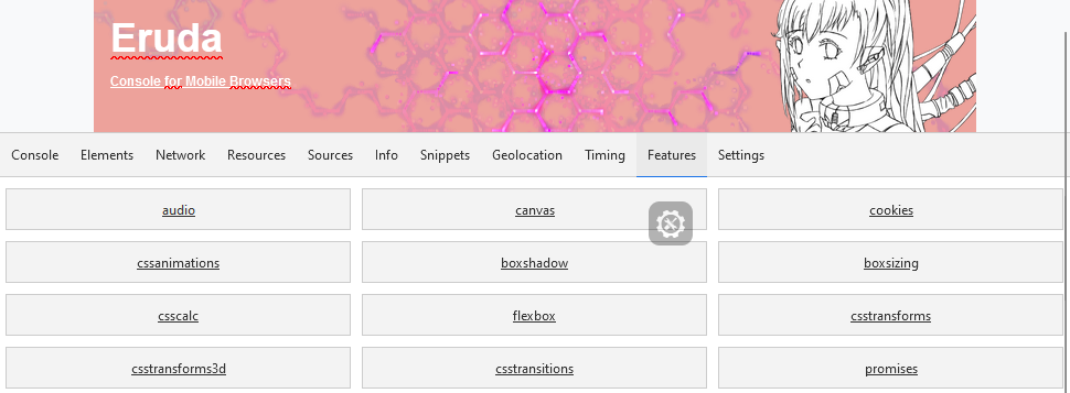 L'ampia dotazione di plugin rende Eruda uno strumento molto completo e molto simile ai DevTools dei principali browser per la navigazione Web. Troviamo quindi estensioni per il monitoraggio del rendering e della memoria, per il controllo delle funzionalità supportate dal browser e per effettuare benchmark degli script JavaScript. Nello stesso modo è possibile testare le feature per la geolocalizzazione, le performance al caricamento, le API per l'orientamento nei divice e gli effetti del tocco sugli schermi.