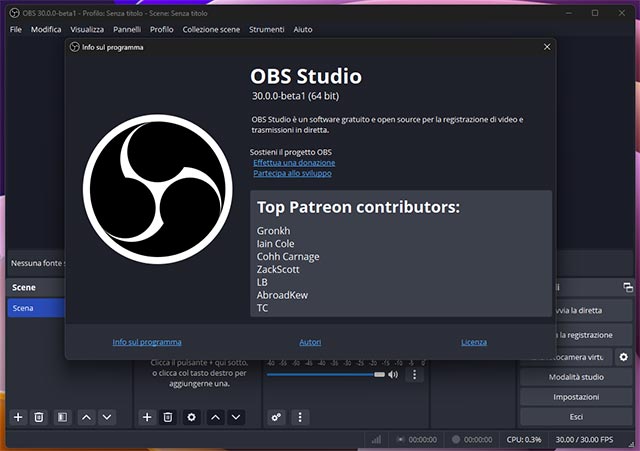 È disponibile la beta 1 di OBS Studio 30.0.0