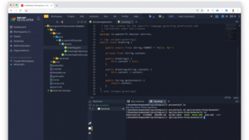 CodeReady Workspaces è quindi un "Kubernetes IDE" e da accesso tool dedicati alla creazione di applicazioni e servizi. Al contrario di altri IDE, CodeReady Workspaces si avvia all'interno di un Kubernetes cluster, integrando appunto il supporto al deployment Cloud-native.