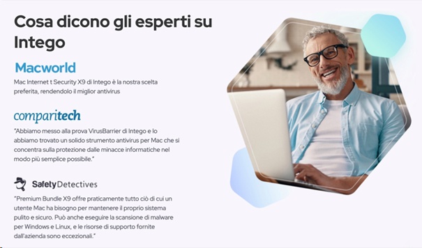 Su Mac una buona soluzione è il software di sicurezza chiamato Intego: è già usato da più di 10 milioni di utenti in tutto il mondo ed è specifico per il sistema operativo di Apple, in più viene universalmente riconosciuto come uno dei più affidabili da molti esperti americani come ad esempio il noto AV-Test.