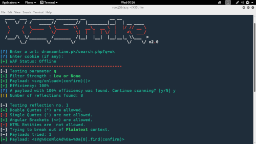 XSStrike è una suite di rilevamento Cross Site Scripting equipaggiata con parser scritti dagli sviluppatori del progetto: un generatore di payload intelligente, un potente fuzzing engine e un crawler, cioè un software che analizza i contenuti di un database, di una rete o di un sito web in un modo automatizzato.