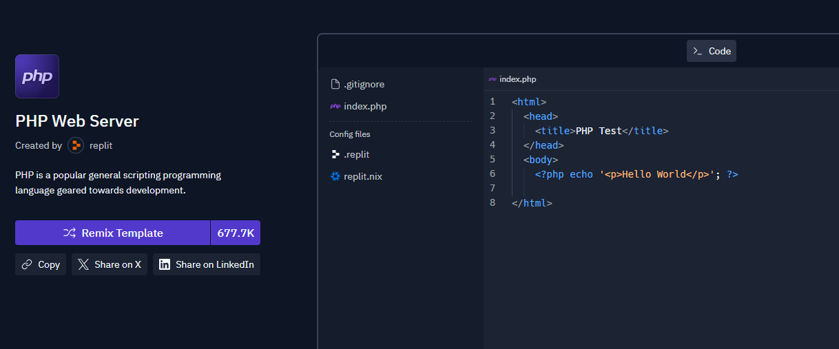 Cliccando su "Remix Template", creiamo una copia modificabile di un template esistente e Replit genera per noi un nuovo Repl (cioè un progetto), basato su quel template. La struttura, i file e il codice di partenza del template vengono copiati automaticamente nel nostro workspace, e possiamo modificarli come vogliamo. È come duplicare un progetto predefinito per farlo nostro. Una volta remixato, il nuovo progetto diventa indipendente. Possiamo salvarlo, rinominarlo, condividerlo e continuare a lavorarci in totale libertà, senza alterare il template originale.